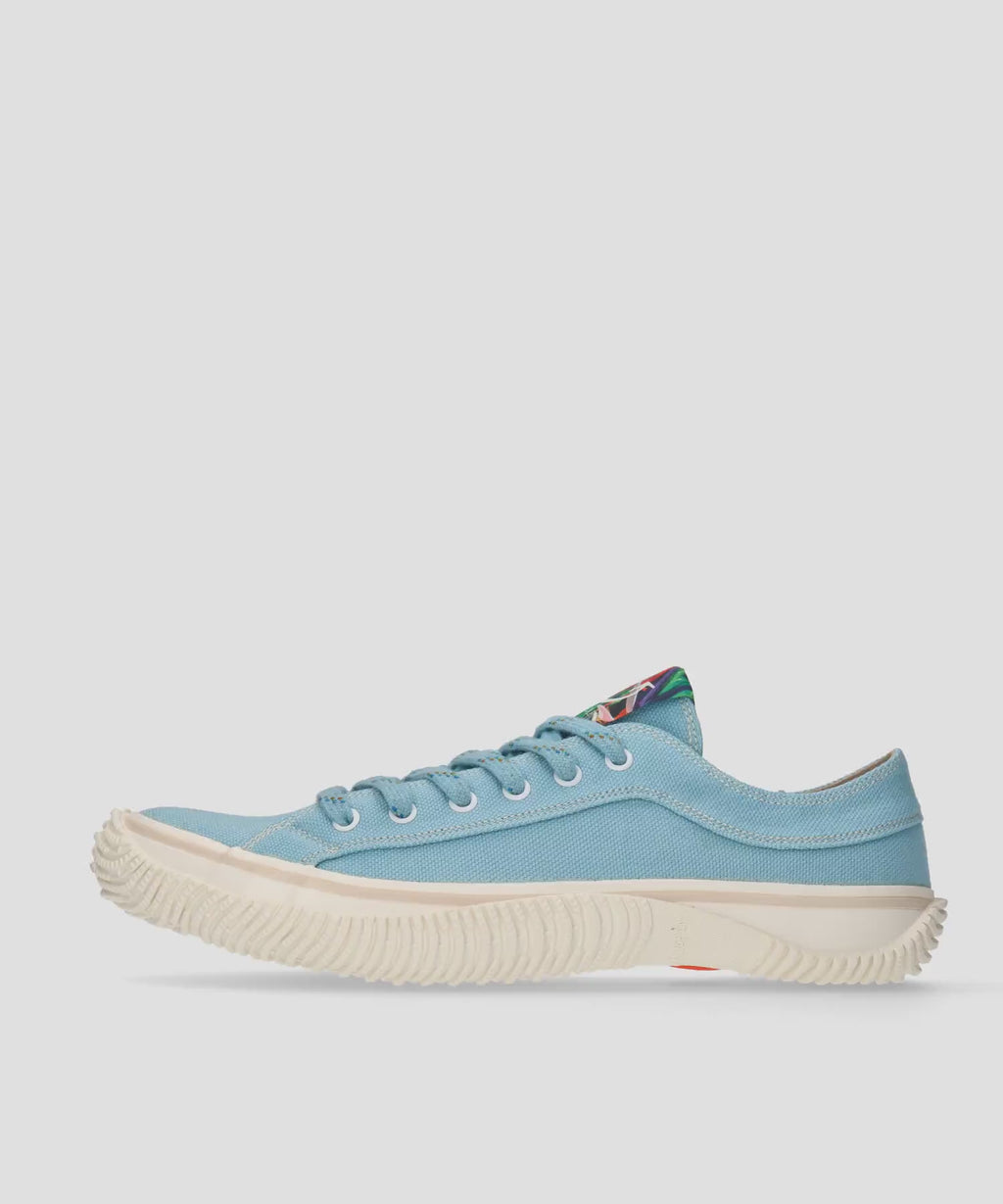 This special pair uses threads recycled from paper cranes donated to Hiroshima that have completed their role in prayer, and are made into an original canvas upper. The yarn recycled from paper cranes, ‘origami crane rayon yarn’, was initially a very delicate material. However, by blending it with cotton yarn, we were able to create a canvas fabric that was strong enough to be used in trainers, and we worked with a fabric manufacturer for more than a year to develop it. It is strong and supple, with a smooth touch that is different from cotton canvas and produces a comfortable fit.